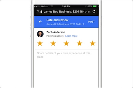 Customers choose their preferred review site and easily leave a review using their phone or computer. To make it as fast and simple as possible, mobile users are suggested review sites based on phone type and apps installed. Android users are automatically directed to Google to leave a review.