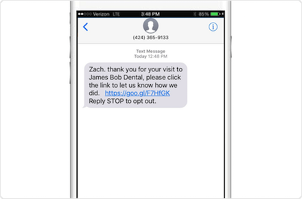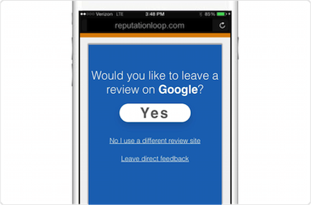 An automated message immediately encourages the reader to leave a review at customer-preferred hot spots like Google, Facebook & other top review sites. Our software automatically detects what type of phone your customers are on & what apps they have installed on their phone for their preferences